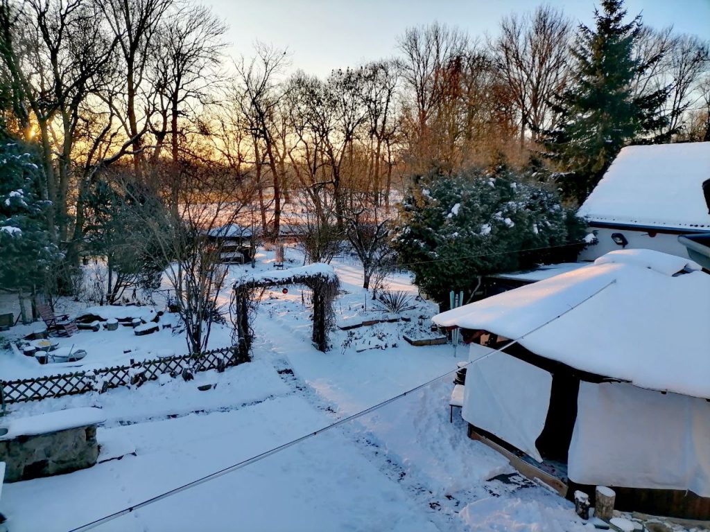 Ein Blick aus dem Fenster erstaunte mich – alles voll Schnee, richtig fett viel. Wow!